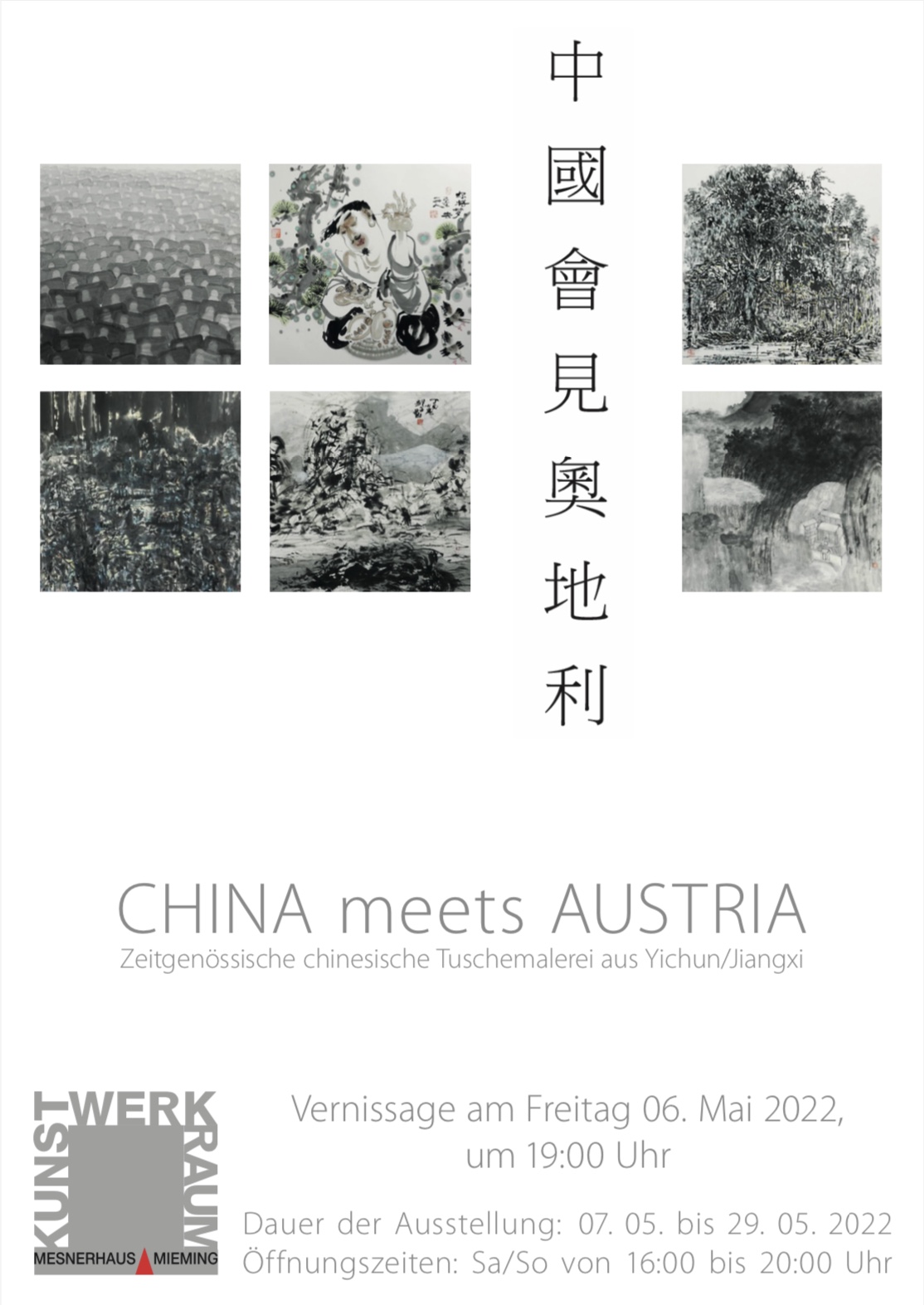 Vom 6. - 29. Mai 2022 werden im Kunst-Werk-Raum Mesnerhaus Mieming Tuschearbeiten von sechs zeitgenössischen chinesischen Künstlern präsentiert.