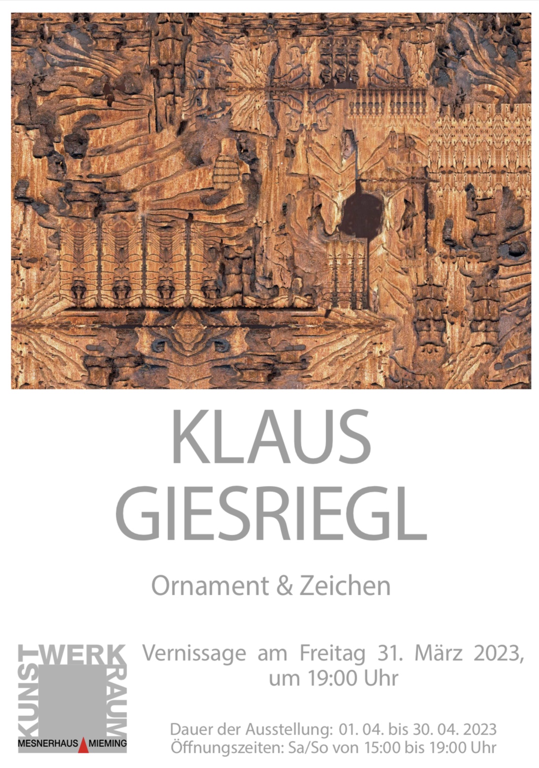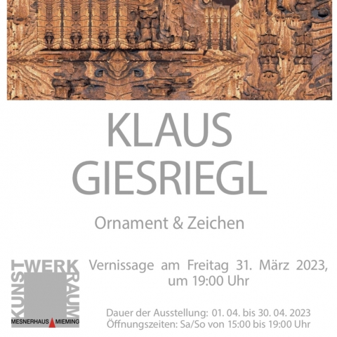 Klaus Giesriegl, Hall in Tirol, hat sich seinen Zugang zur Kunst über die Semiotik erarbeitet. Gleich zwei Brennpunkten einer Ellipse sind die beiden Begriffe Zeichen und Ornament „modus vivendi“ seiner Werke.
